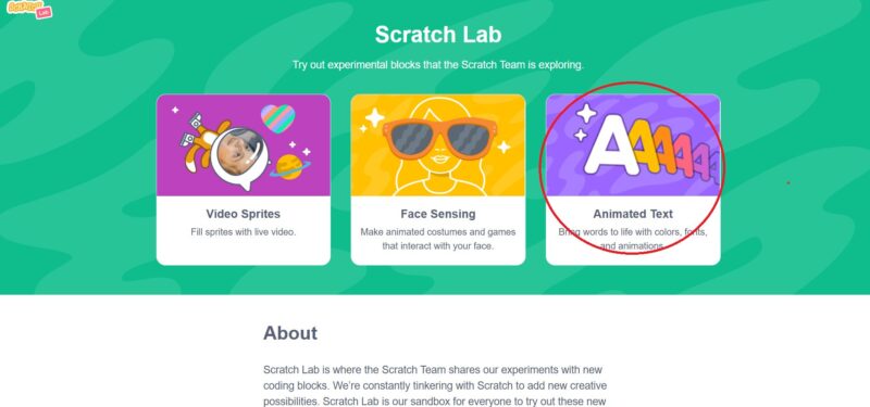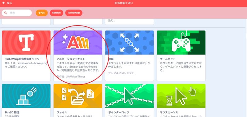 アニメーションテキスト(Animated Text)は、Scratchチームが開発したScratch LabやTurboWarpなどで使える拡張機能の一つです。